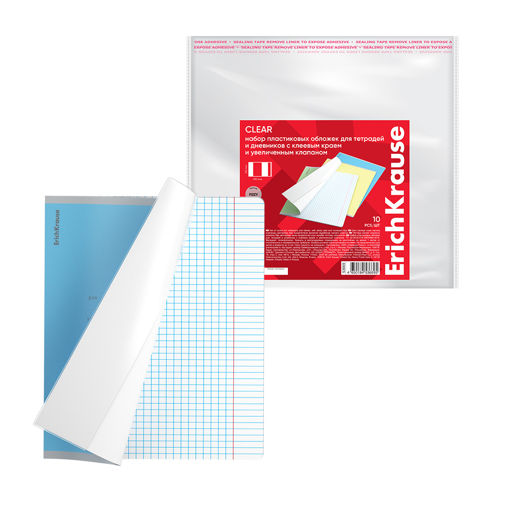 Набор пласт. обложек ErichKrause текстура Апельсин Прозрачность для тетр. и дневн., кл.край, увелич. клап., 212х395мм, 80мкм (пакет 10 шт.)