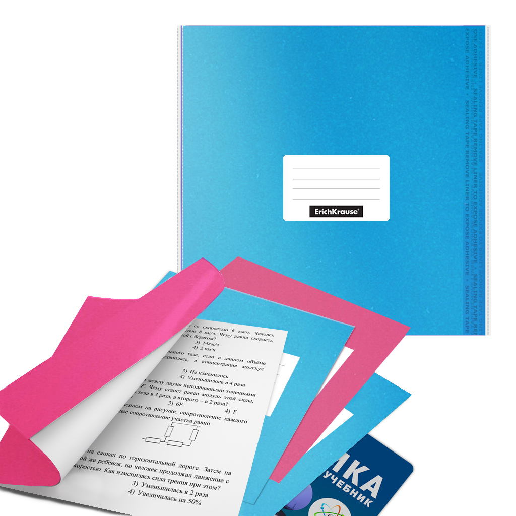 Набор пласт. обл. ErichKrause текстура Зеркало Жвачка, арома, для учеб.,с кл. край,клап. в край, стик. для подп., 232х440мм, 100мкм (п.12шт)