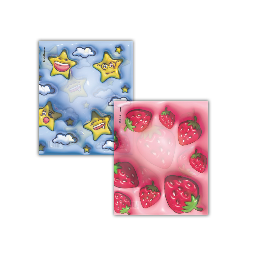Набор пластиковых обложек ErichKrause Дутые фигуры, для тетрадей и дневников, 212х347мм, 80 мкм, ассорти (пакет 12 шт.)