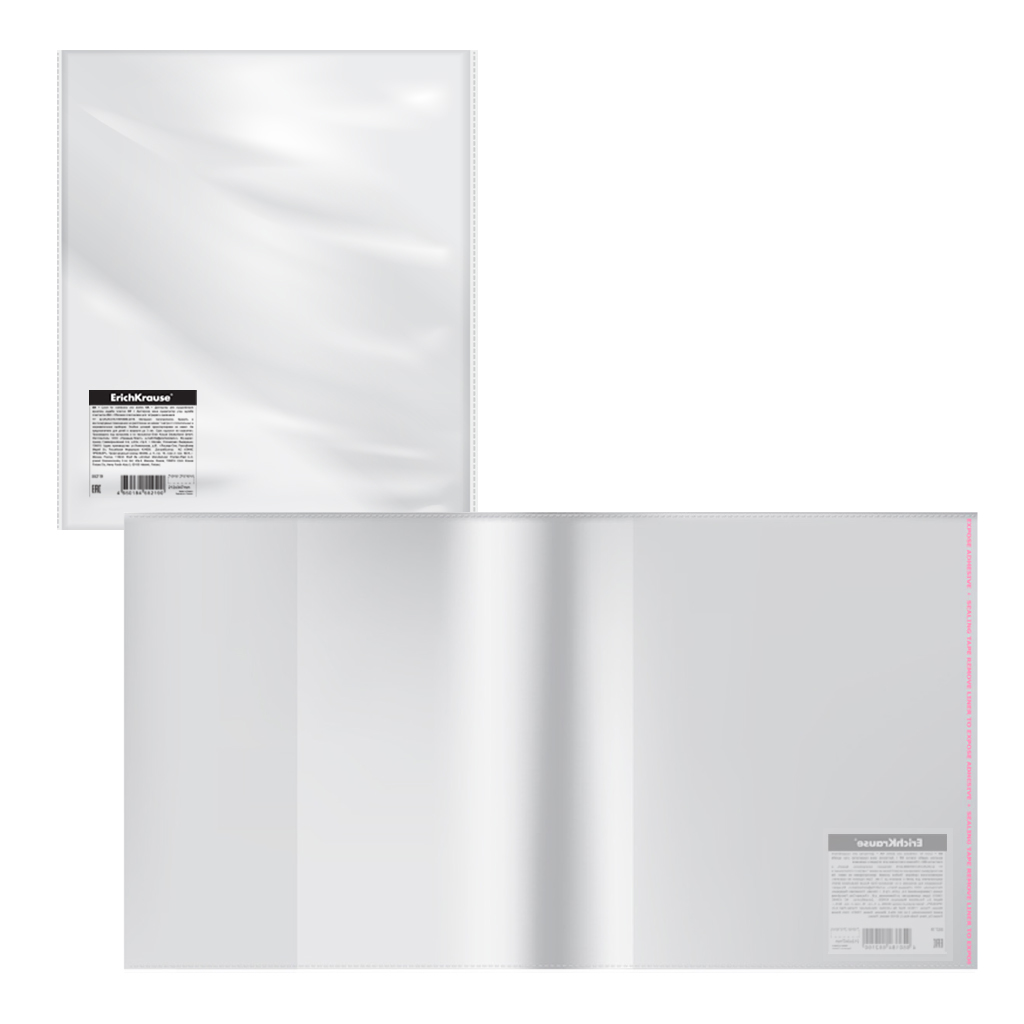Обложка пласт. ErichKrause текстура Зеркало Прозрачность, для тетр. и дневн., кл.край, клап. в край, 212х395мм, 80мкм (в пакете по 100 шт.)