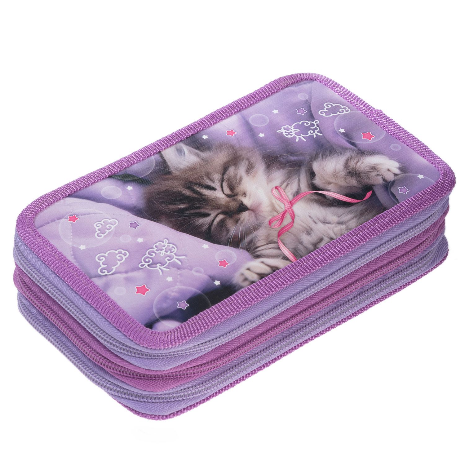 Пенал 3 отд. (190*110*63) молния, лам.картон "Что снится котикам?"