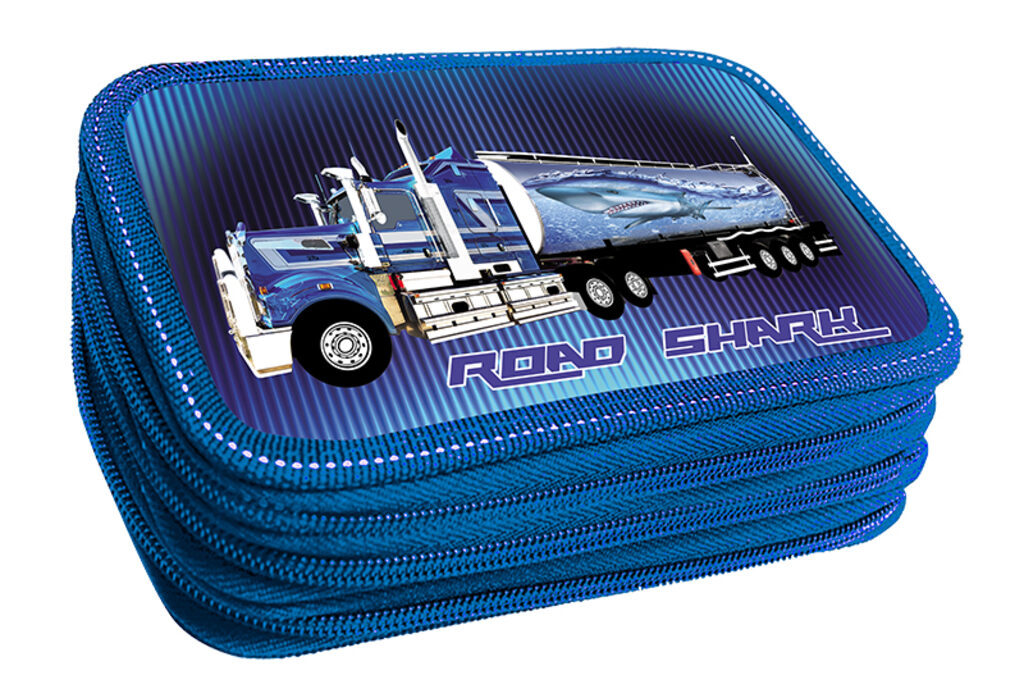 Пенал 3 отд. (205*125*55) молния, лам.картон "Акулы дорог" с эффектом МЕТАЛЛ+ОБЪЕМ