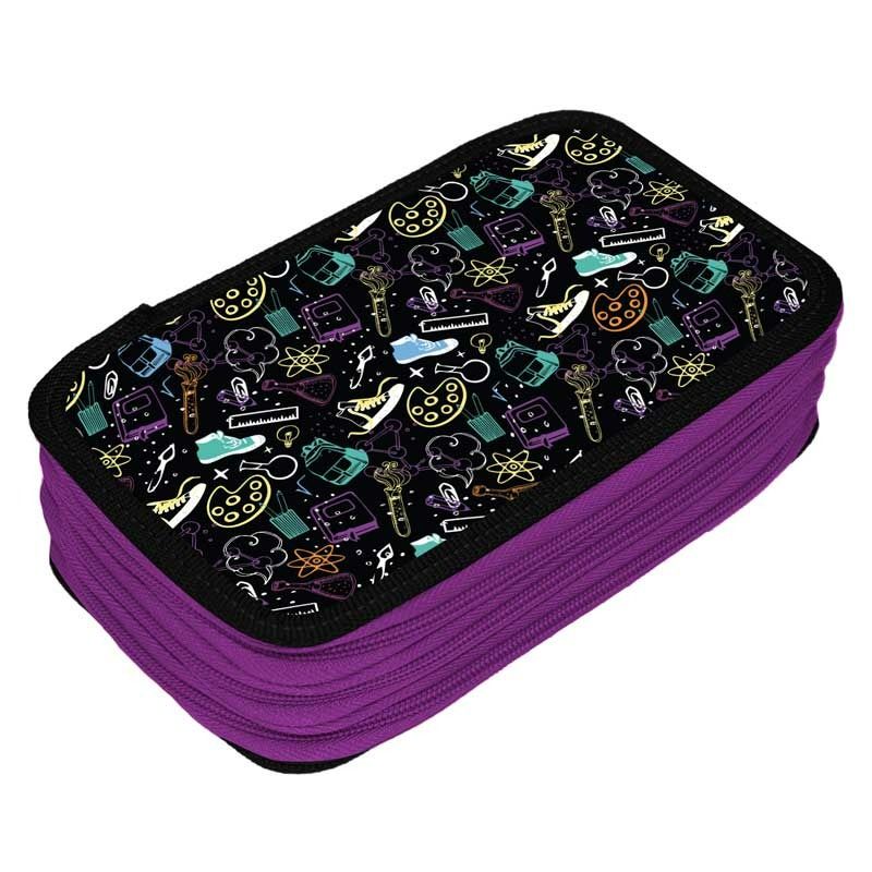 Пенал для школьных канцелярских принадлежностей с тремя отделениями. Увеличенный размер 125х205х55 мм (помещается карандаш с резинкой). Удобные молнии с трех сторон с металлическим бегунком. Вмещает до 48 предметов. Материал снаружи - картон с цветной печатью с эффектом объёма. Конструкция отличается износостойкостью и прочностью, поможет защитить канцелярские принадлежности от повреждений. Внутри пенала прочно пришиты резинки. Внутренняя часть пенала выполнена из картона с ламинацией. Поставляется без наполнения.