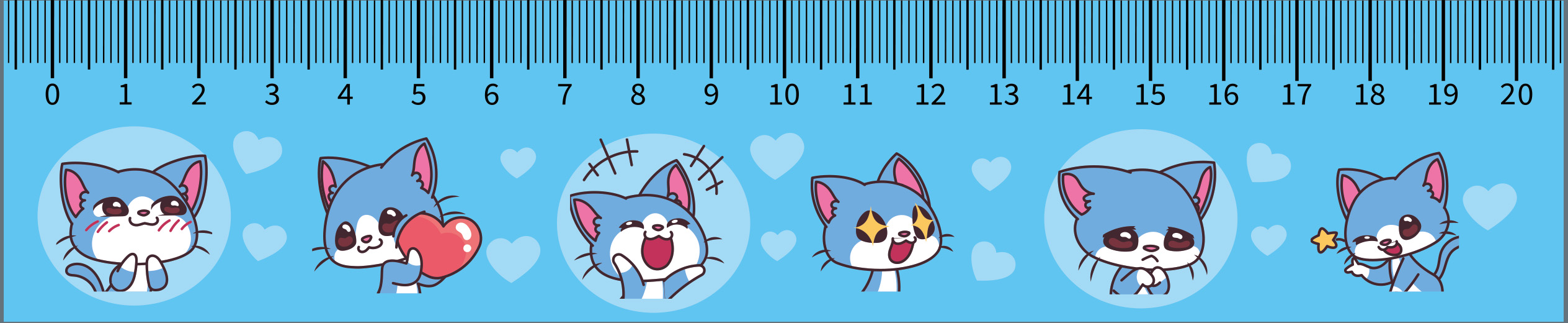 Закладка с линейкой 20см, "Коты"
