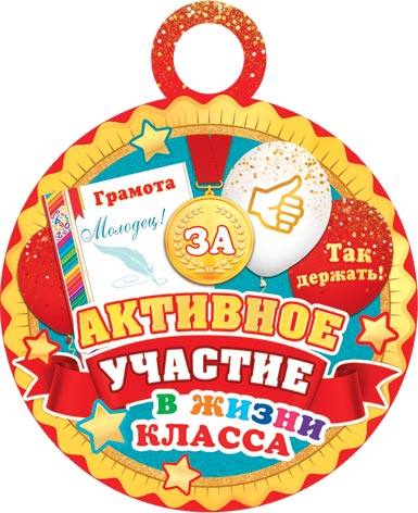 Медаль картонная 100мм "За активное участие в жизни класса"