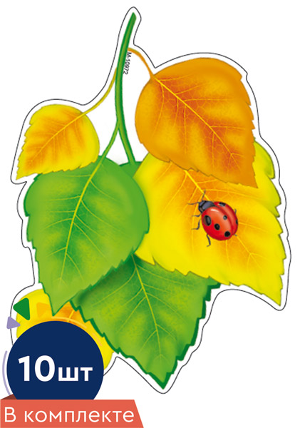 Комплект украшений на скотче 10*15см "Листочки. Береза осенняя" 10шт/уп