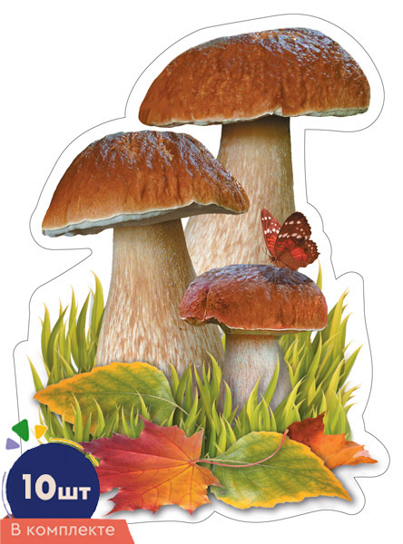 Комплект украшений на скотче 8*10см "Гриб Белый" 10шт/уп