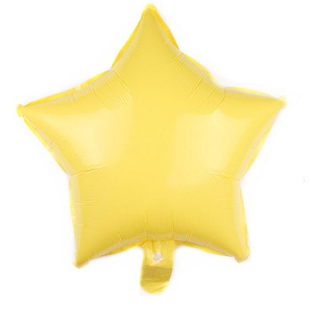 Фольгированный шар в форме звезды. Приспособлен под гелий. Фольгированные воздушные шары изготавливаются из тонкой миларовой пленки, позволяющей шару не сдуваться в течение нескольких дней. Фольгированные воздушные шары надувают через клапан. Поэтому плотно надутый шар завязывать не требуется - обратный клапан хорошо удерживает гелий внутри шара. К шару привязывают ленту только для того, чтобы шар не улетел. Сдувшийся фольгированный шар можно поддуть гелием или воздухом и он всегда будет иметь товарный вид.
