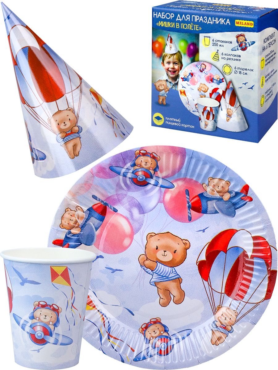 Набор для праздника "Мишки в полёте" тарелка 6 шт, стаканы 6 шт, колпаки 6 шт