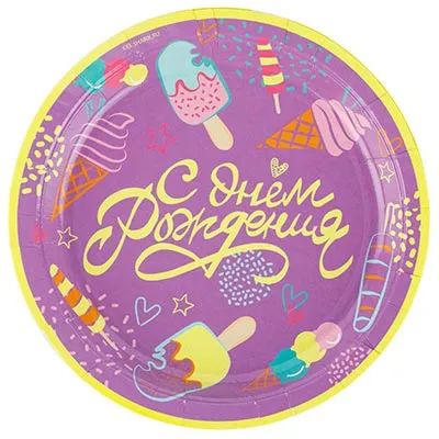 Тарелка бум. 17см, 6 шт "С ДР Мороженое"