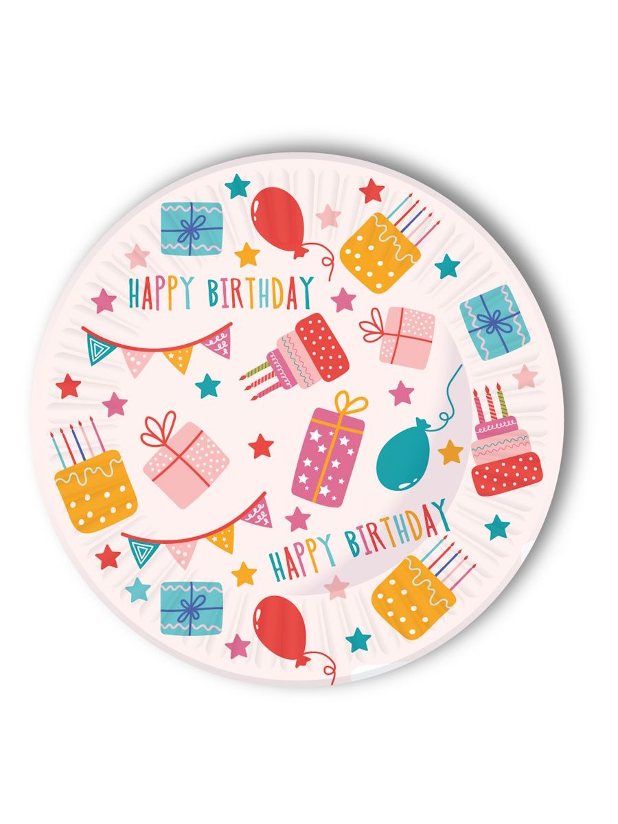 Тарелка бум. 18 см, 6 шт "С днём рождения"