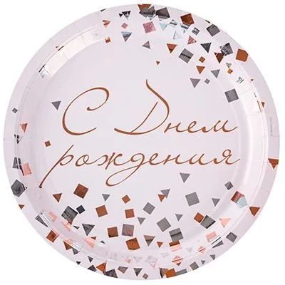 Тарелка бум. 23 см, 6 шт "С ДР Конфетти Party" розовая