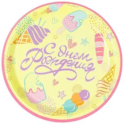 Тарелка бум. 23см, 6шт "С ДР Мороженое"