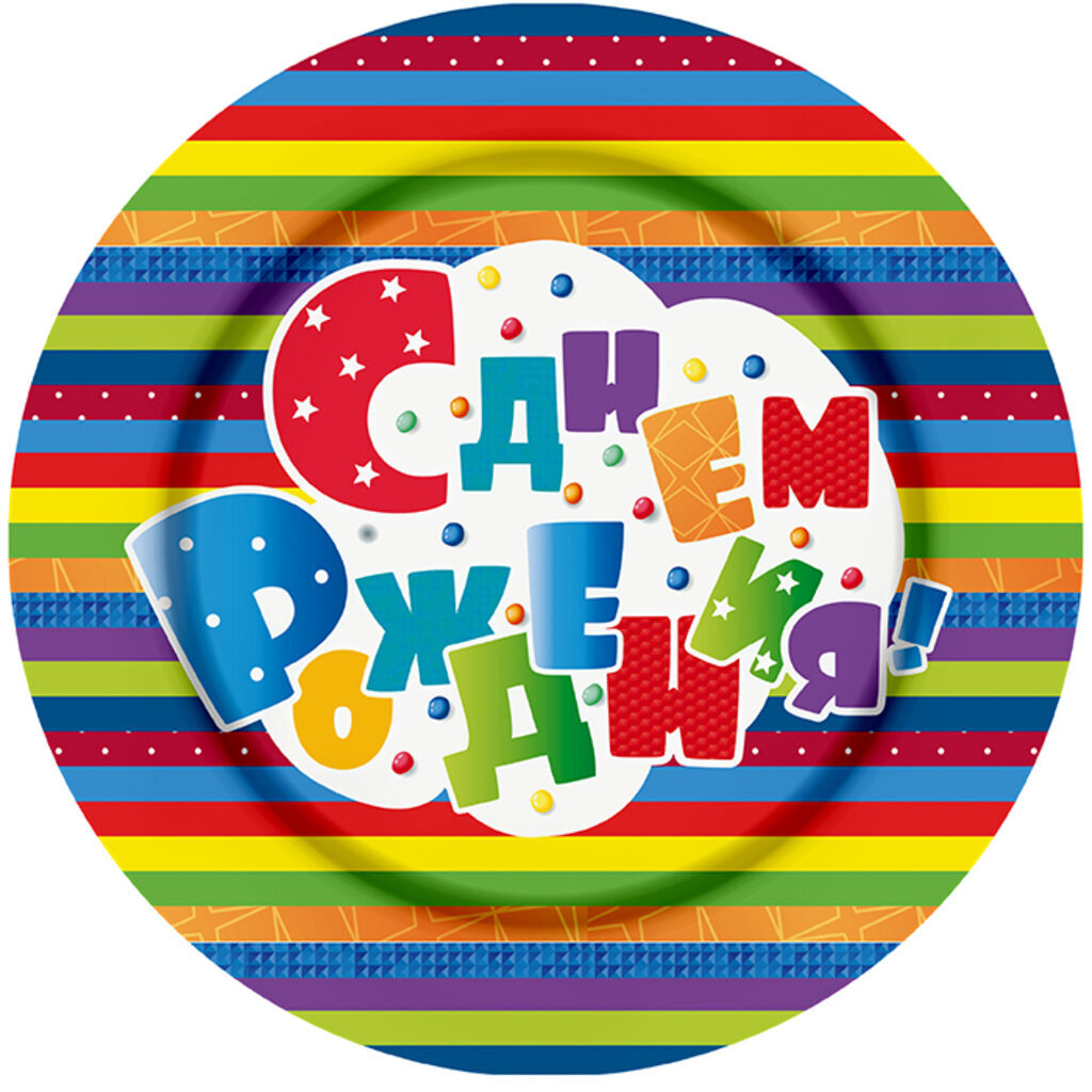 Тарелка бум. 18 см, 6 шт"С Днем рождения"