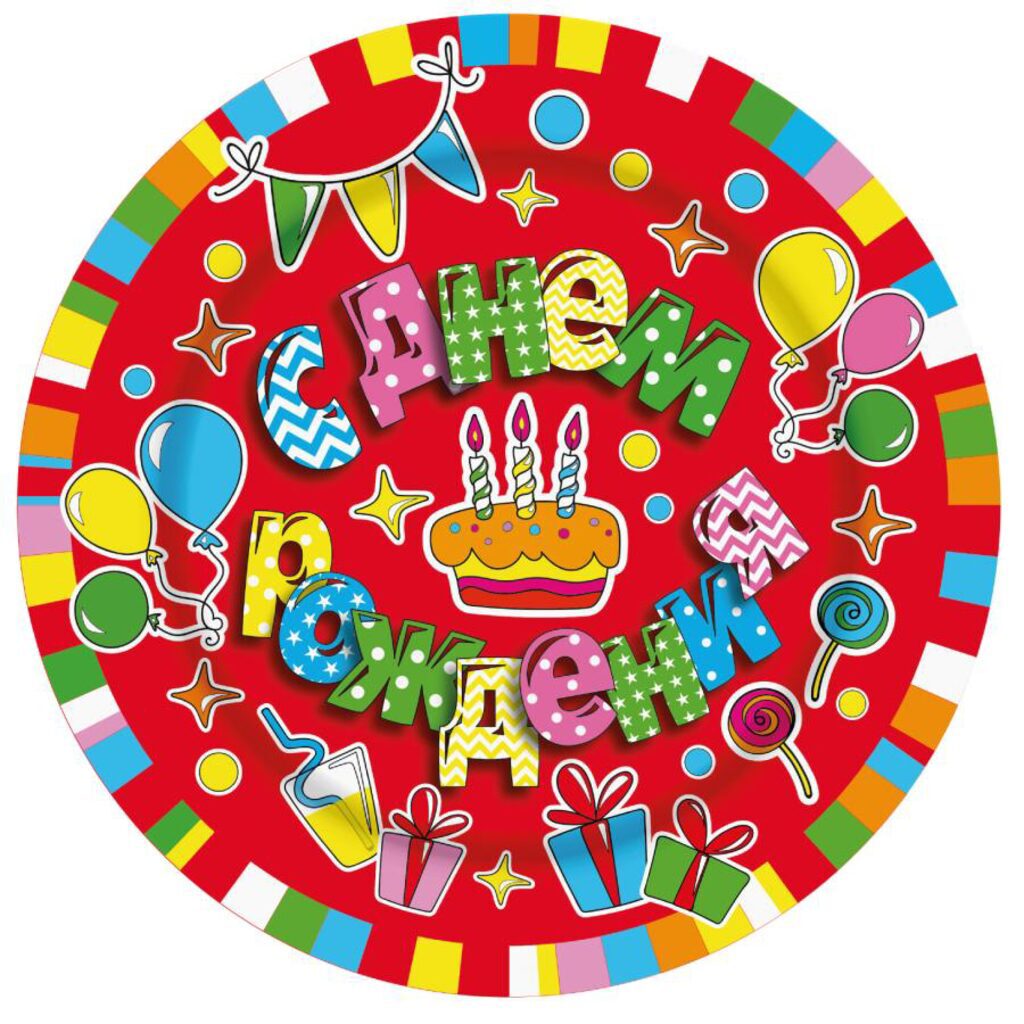 Тарелка бум. 18 см, 6 шт "С Днем рождения"