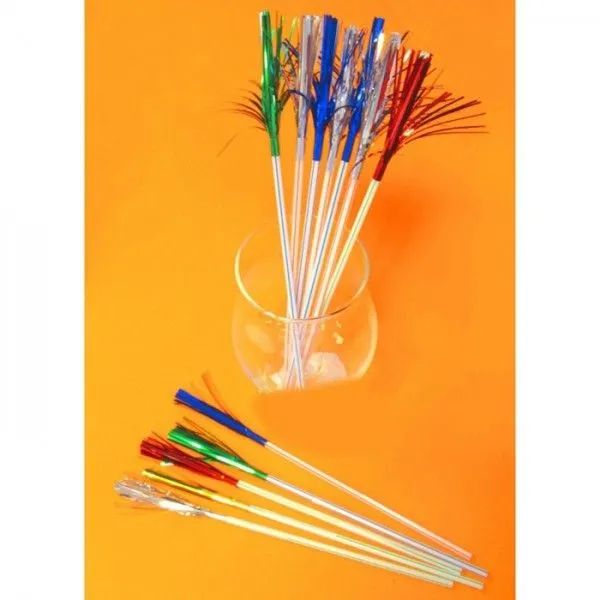 Оригинальные трубочки для коктейлей, декорированные салютом из фольги, помогут красиво подать напиток и оформить фуршет или праздничный стол.
