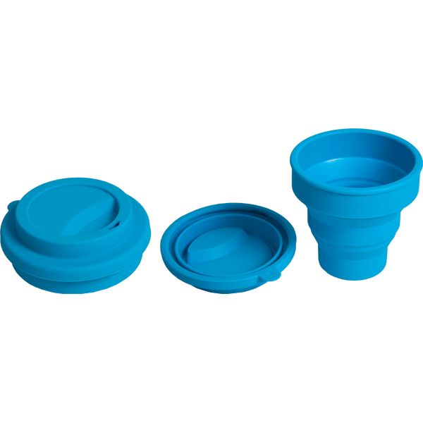 Стакан для ИЗО "deVENTE. School" силиконовый, складной, в собранном виде 80x90x80 мм, в сложенном 80x10x80 мм, с силиконовой крышкой, неоновый голубой