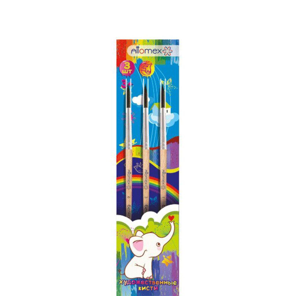 Набор кистей "Attomex" 03 шт (белка 1, 3, 6) деревянная ручка, в пластиковом блистере