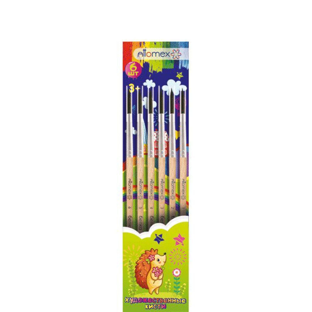 Набор кистей "Attomex" 06 шт (белка 1, 2, 3, 4, 5, 6) деревянная ручка, в пластиковом блистере