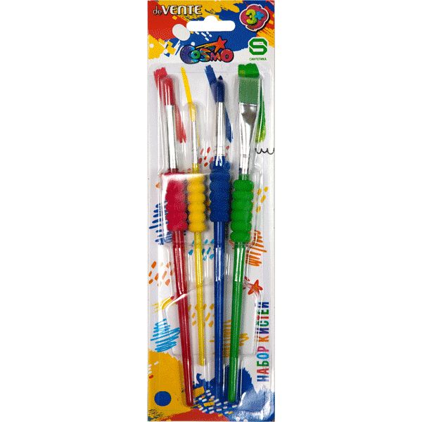 Набор кистей "deVENTE. Cosmo" 4 шт (синтетика круглые 2, 6, 10, плоская 12) ручка с эргономичным грипом Soft Touch, окрас волоса, ручки и грипа в ярких цветах, в картонном блистере