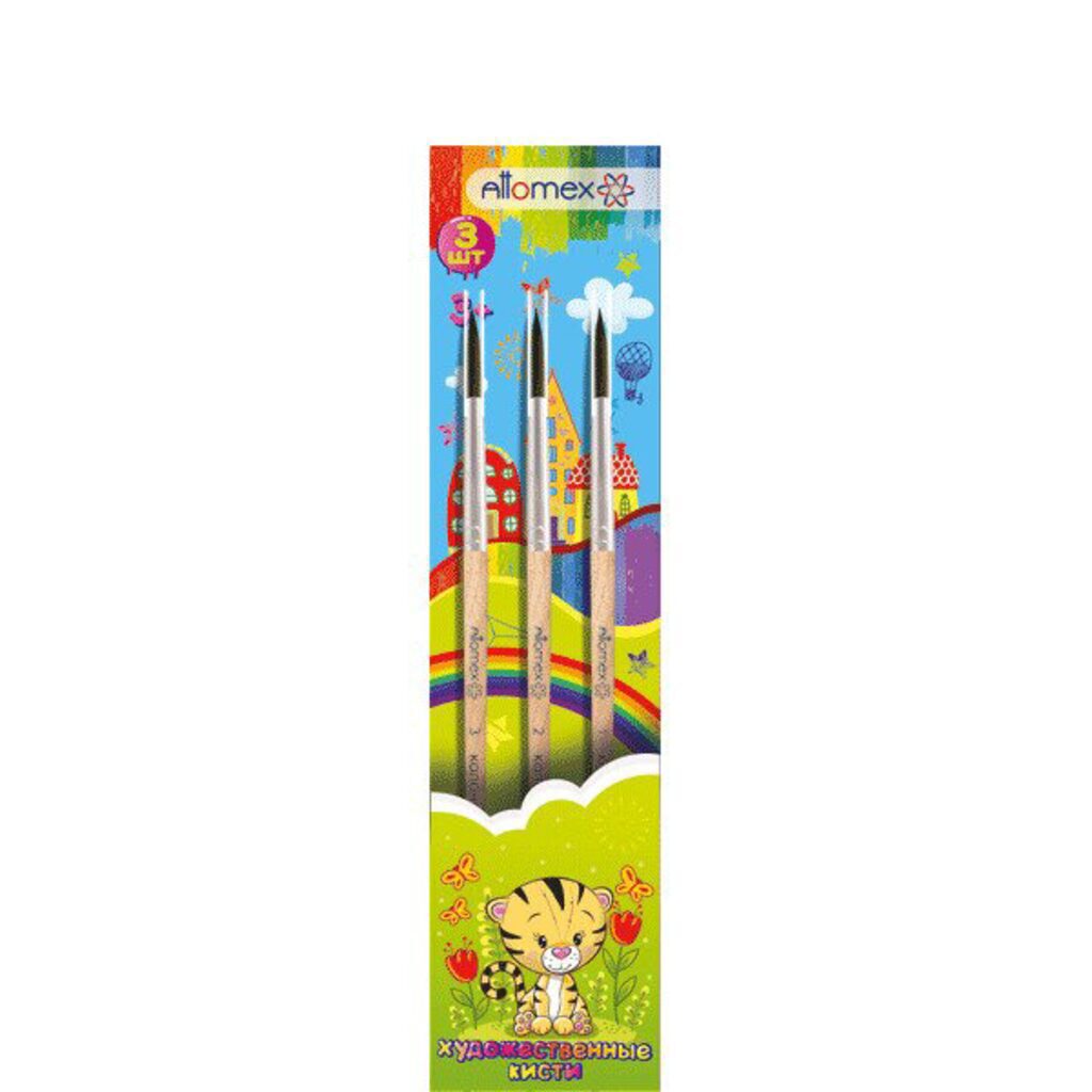 Набор кистей "Attomex" 03 шт (колонок 1, 2, 3) деревянная ручка, в пластиковом блистере