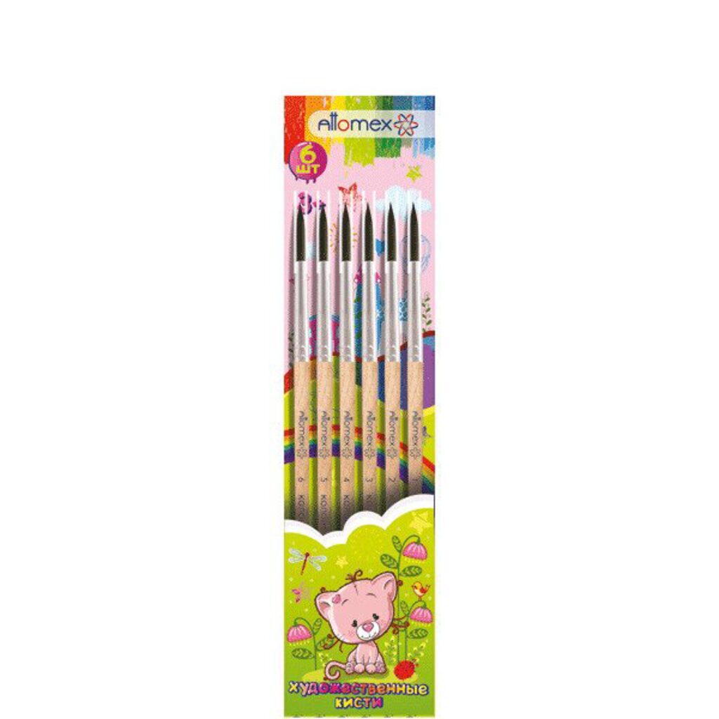 Набор кистей "Attomex" 06 шт (колонок  1, 2, 3, 4, 5, 6) деревянная ручка, в пластиковом блистере