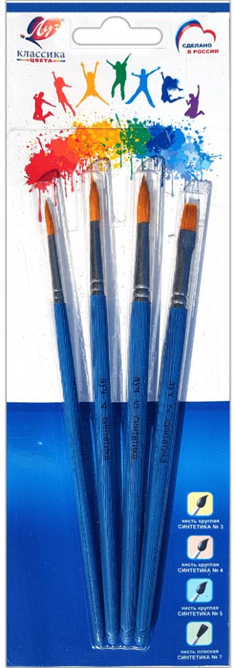 Набор кистей Луч "Классика цвета" синтетика 4шт.(кругл.3, 4, 5; пл.7)