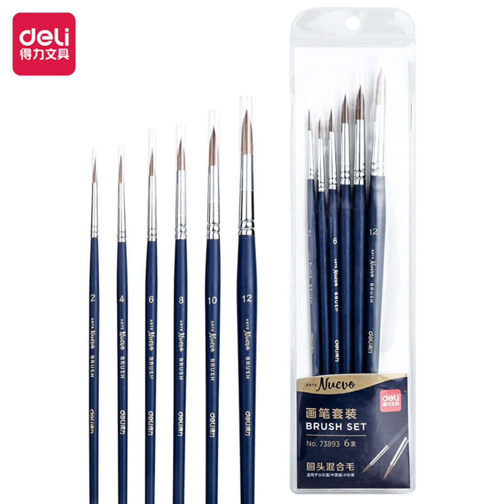 Набор кистей Deli Nuevo 6шт. круглые, синтетика (2, 4, 6, 8, 10, 12) дерев.лакир.ручки
