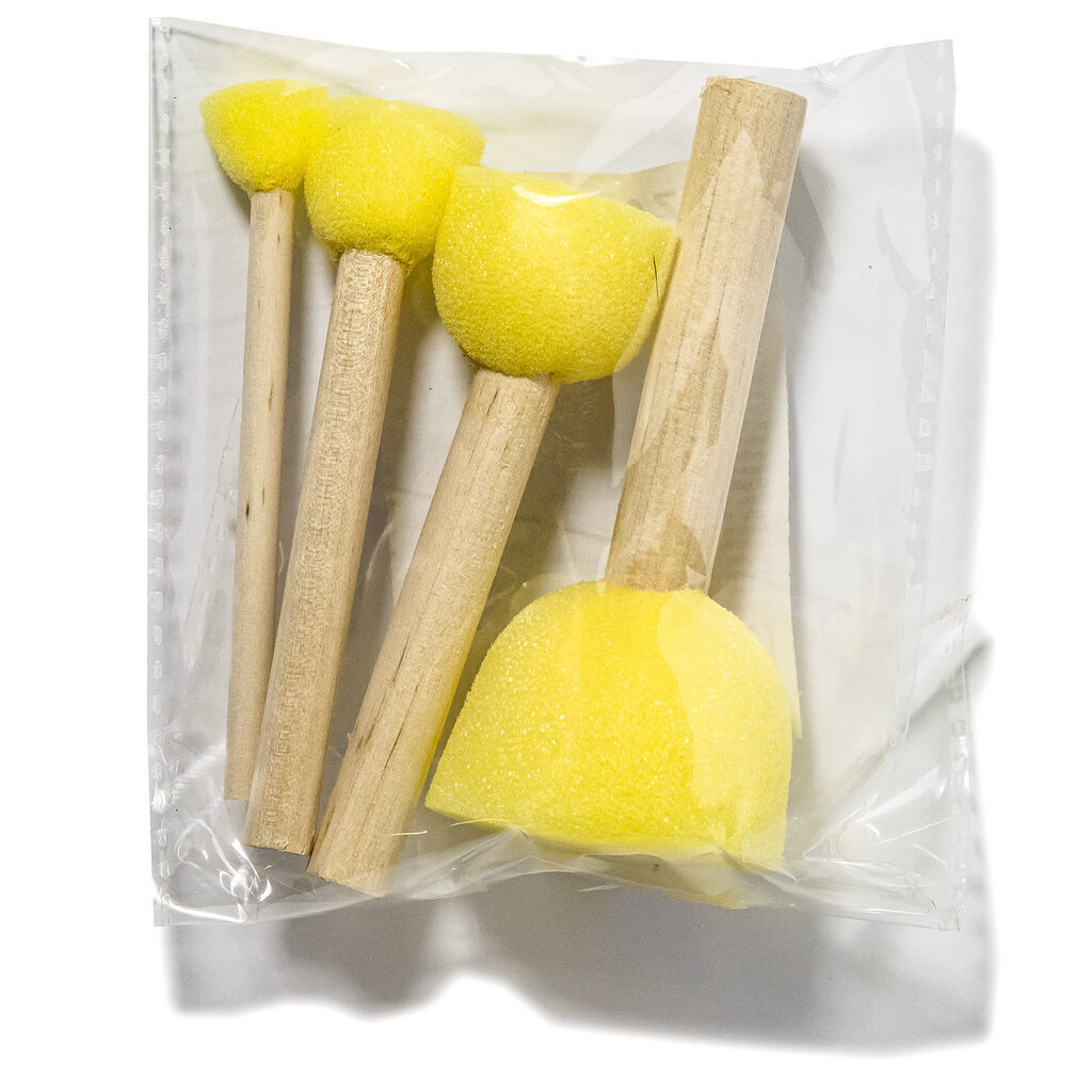 Набор кистей-спонжей поролоновых, 4 шт (диаметр: 4 см, 3 см, 2 см, 1,5 см), ручка деревянная, ОПП-упаковка