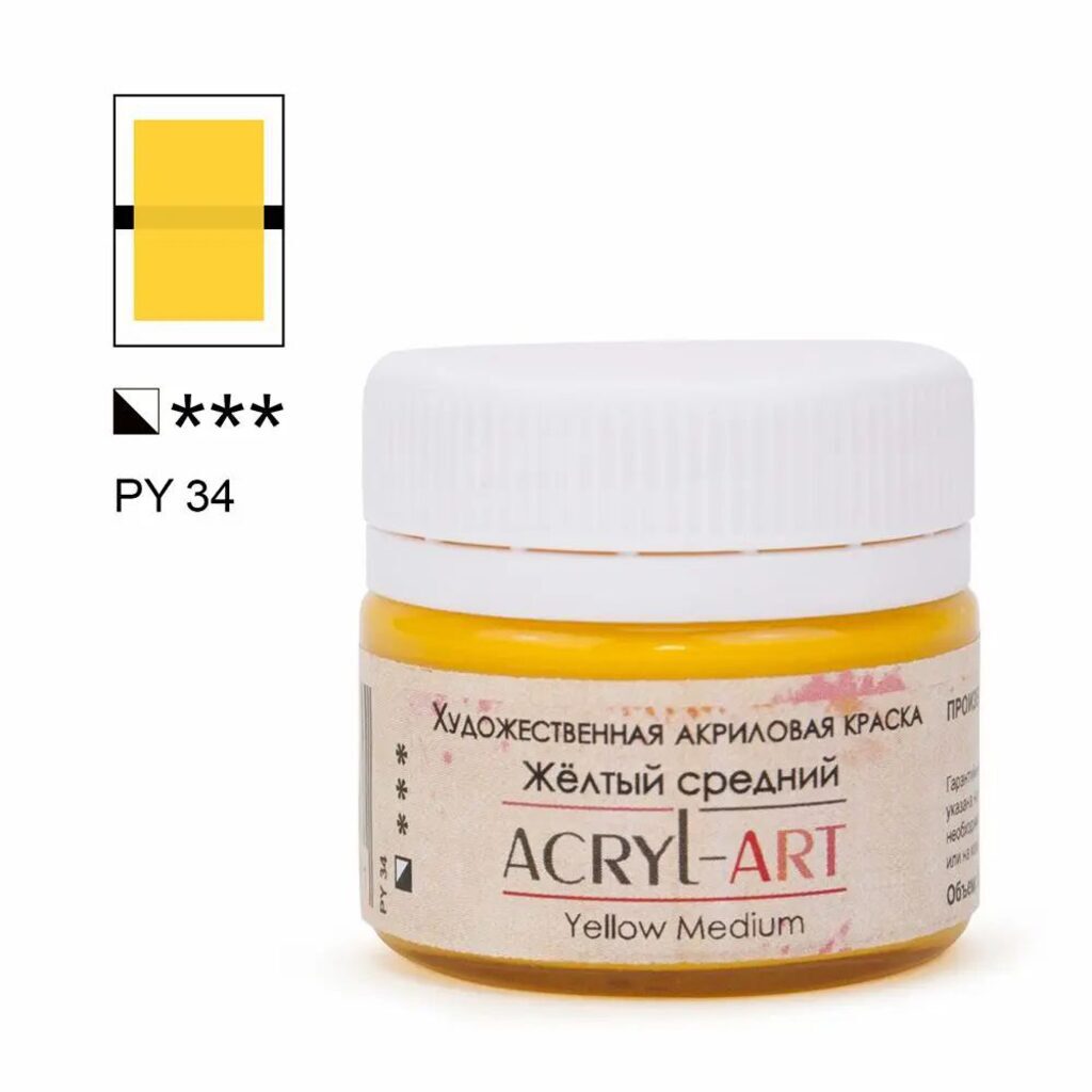 Краска акрил. "Акрил Арт", 20 мл, банка, желтый средний
