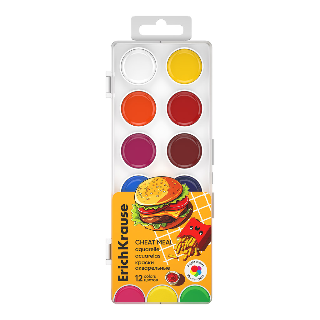 Краски акварельные ErichKrause Культ еды 12 цветов (в пластиковой коробке с европодвесом)