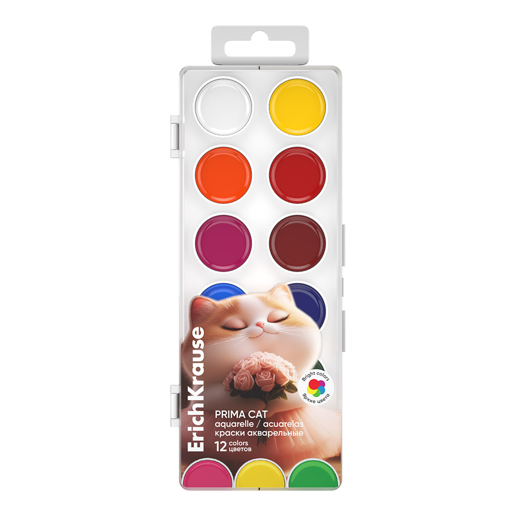 Краски акварельные ErichKrause Прима-кошка 12 цветов (в пластиковой коробке с европодвесом)