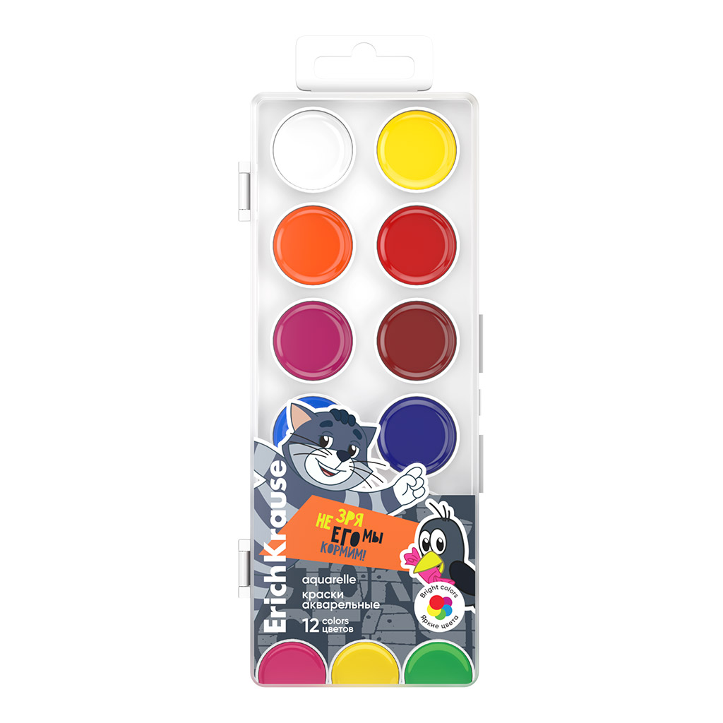 Краски акварельные ErichKrause Простоквашино 12 цветов (в пластиковой коробке с европодвесом)