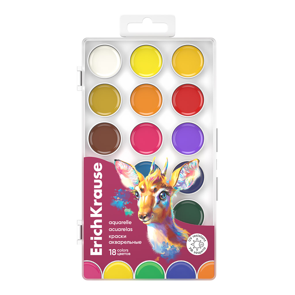 Краски акварельные ErichKrause Сафари с УФ защитой яркости 18 цветов (в пластиковой коробке с европодвесом)