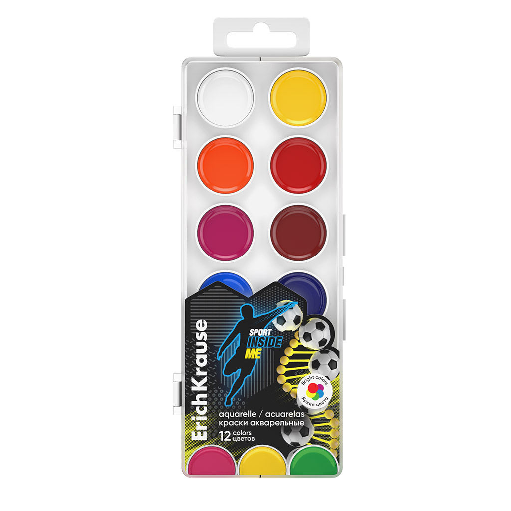 Краски акварельные ErichKrause ДНК спорта 12 цветов (в пластиковой коробке с европодвесом)
