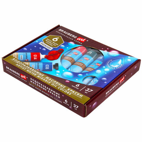 Краски масляные ВОДОРАЗБАВИМЫЕ художественные, 6 цветов по 37 мл в тубах, BRAUBERG ART PREMIERE, 192292