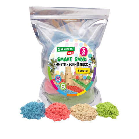 Песок для лепки кинетический, 4 цвета, 3000г,пакет, ПИФАГОР, код 1С, 666005