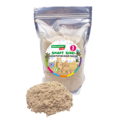 Безопасный кинетический песок BRAUBERG KIDS по текстуре похож на влажный морской песок, но вместе с этим он абсолютно сухой, приятный на ощупь, воздушный и мягкий, прекрасно сохраняет форму во время лепки.