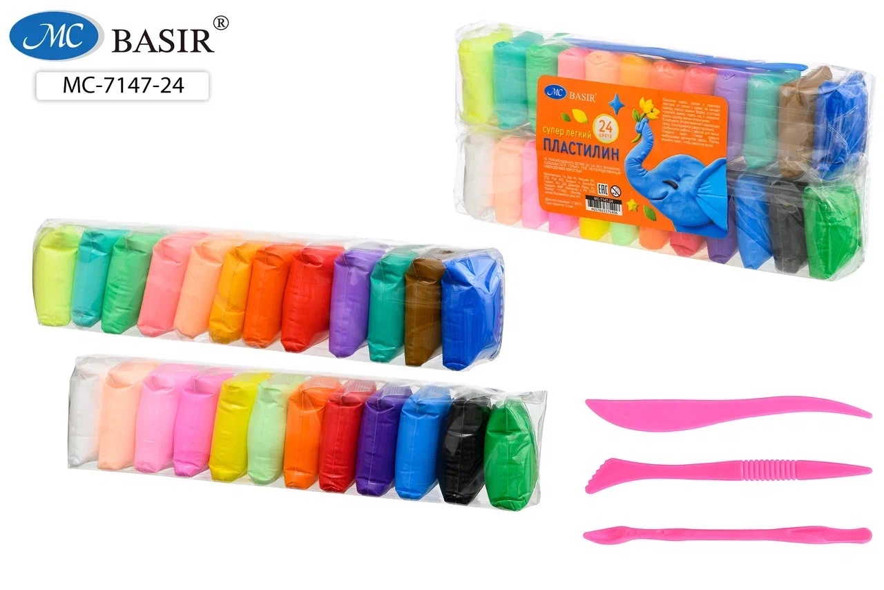 Пластилин супер легкий 24цв*11гр "Слон" + инструменты д/лепки
