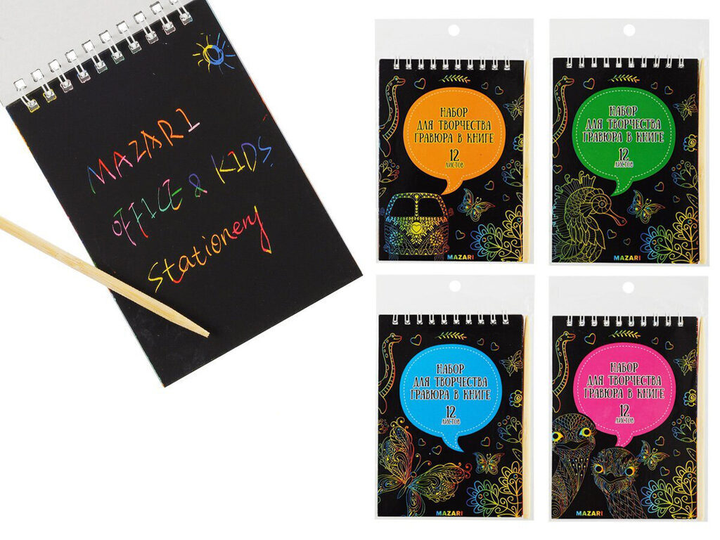Набор для творчества Гравюра в книге, 10 х 14 см, 12 л., без контура, деревянная палочка в комплекте