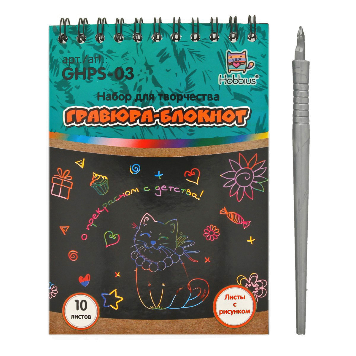 Гравюра-блокнот с разнообразными рисунками на страницах и специальным пластиковым штихелем для создания красочных работ.Там, где будет снят верхний слой, проявится разноцветная основа. Рекомендуем начинать работу сверху и во избежание порчи изображения подложить под руку чистый лист бумаги.Во время работы необходимо очищать стружку, образующуюся при снятии верхнего слоя. Для этого можно использовать мягкую ткань или кисть.Формат блокнота: A7