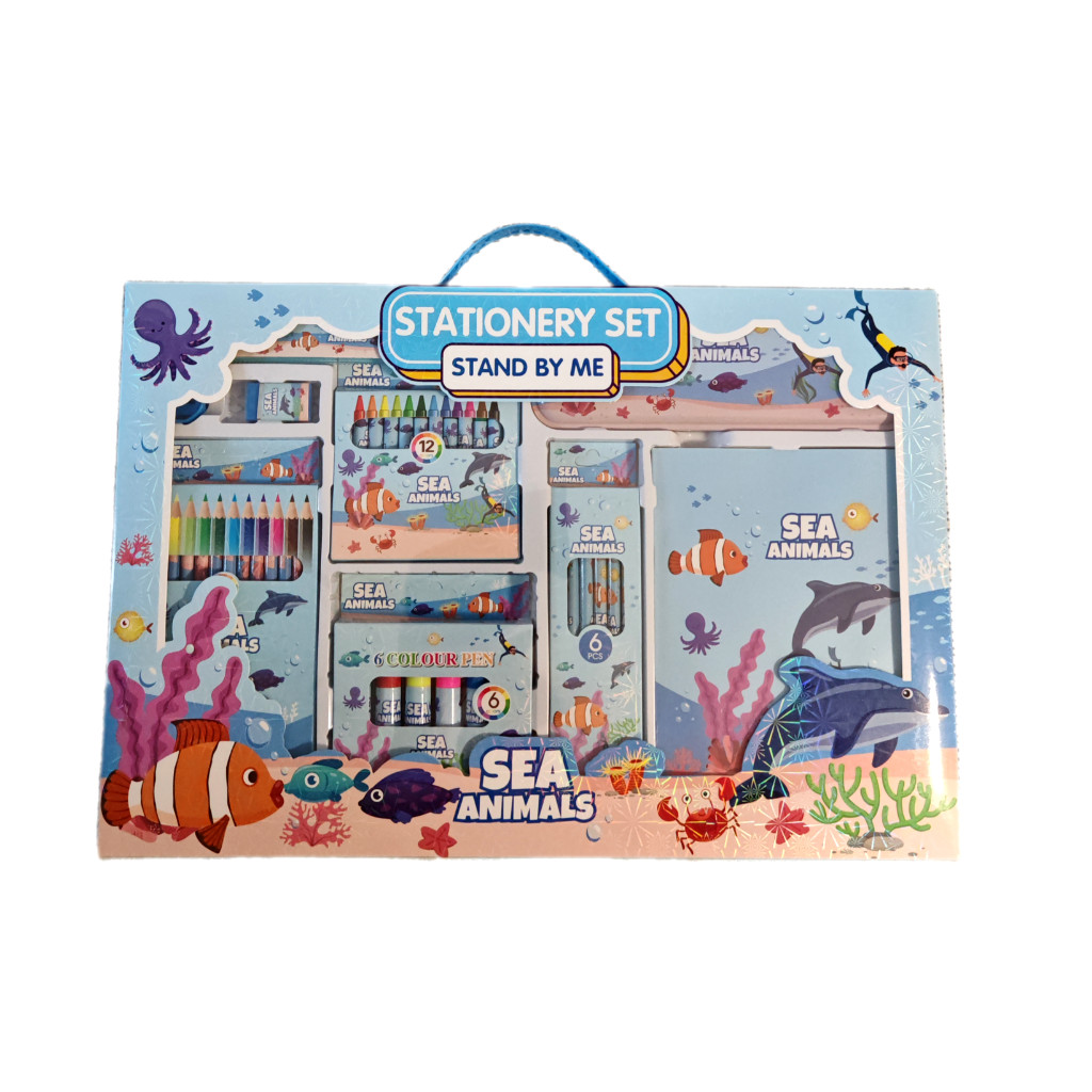 Набор д/рисования 41пр. "Морской" в подар.коробке, цвет. карандаши, фломастеры, мелки