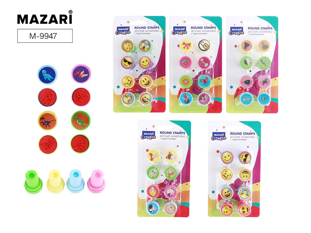 Штампик детский с картинками, размер 2,2х3 см, набор 8 шт, ассорти 4 набора, картинка штампа совпадает с картинкой на крышке, блистерная упаковка