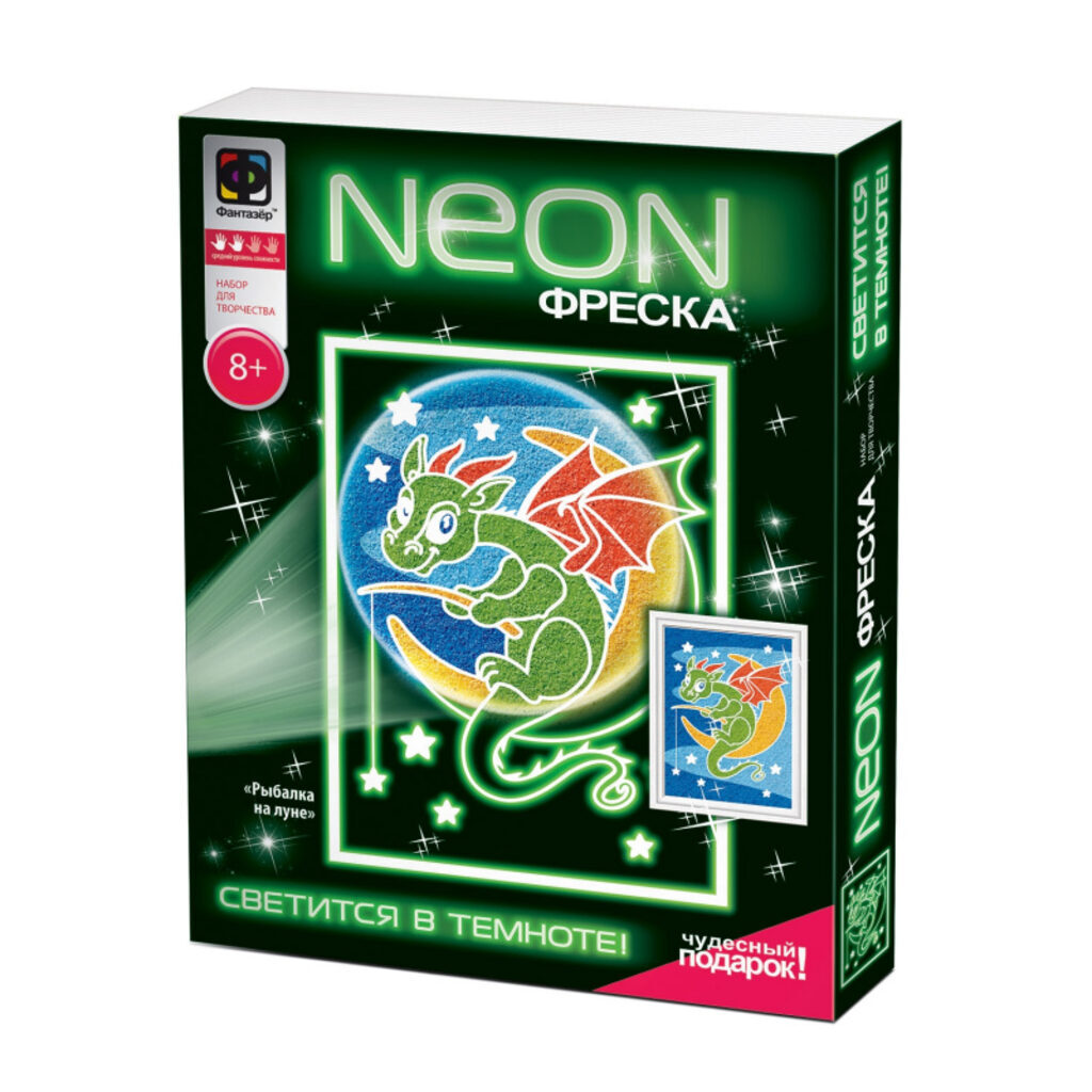 Аппликация из песка 15*10см "Рыбалка на луне" НЕОН