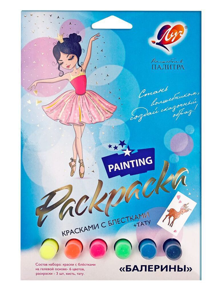 Набор красок с блестками с раскрасками "Балерины"+ тату