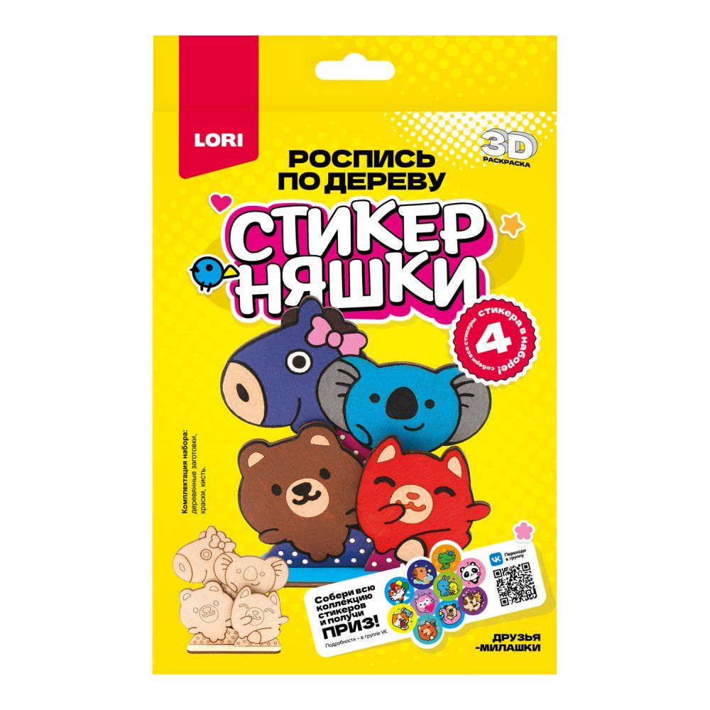 Роспись по дереву 3D-раскраска Стикерняшки "Друзья-милашки"
