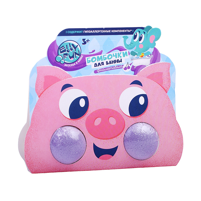 Бомбочки для ванн "ELLYFUN Зверюшки" Поросенок 2шт, фиолетовый 90гр
