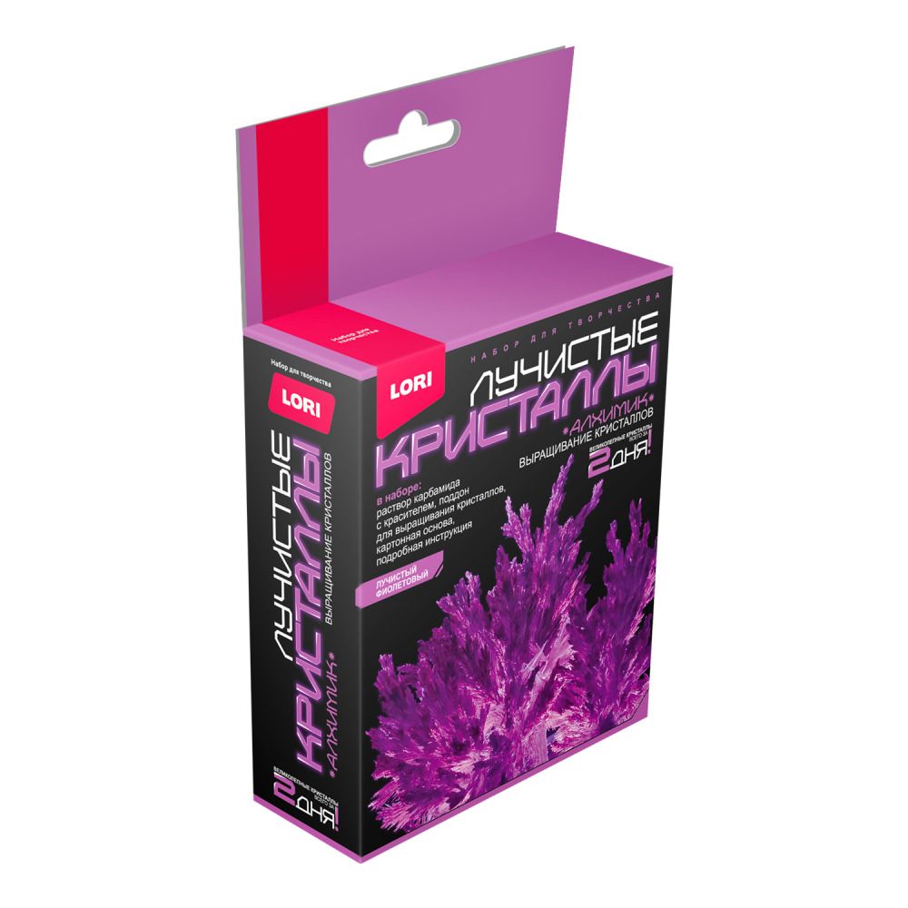 Лучистые кристаллы - химический опыт, результат которого виден уже через два дня. Красивый кристалл в специальной подставке станет отличным украшением интерьера. Комплектация:  специальная подставка, полоски картона, химический реактив, инструкция  Размер упаковки  135*113*40мм