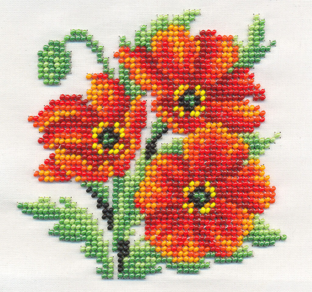 Набор для вышивания бисером 13*13см "Алые маки"