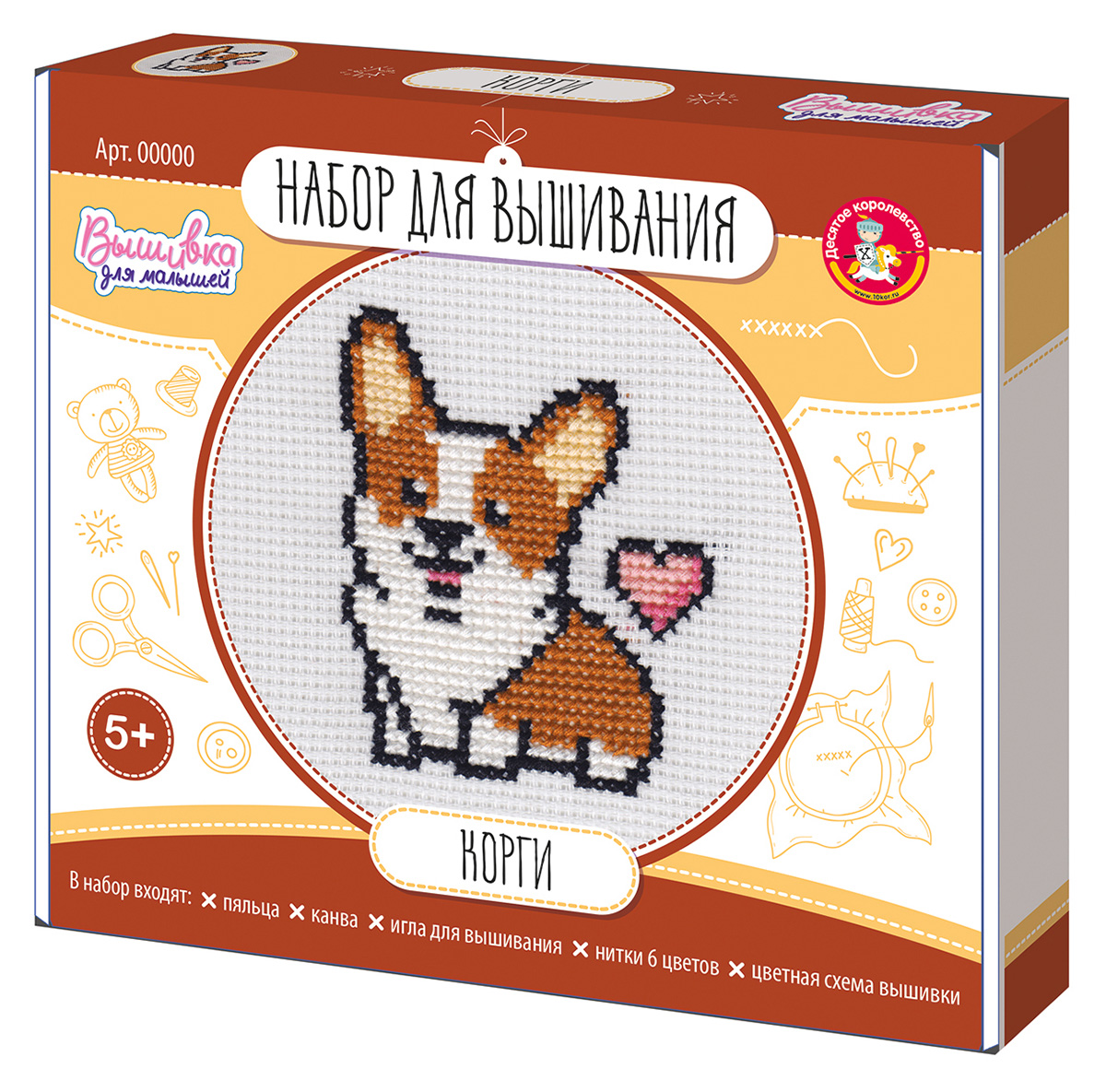 Набор для вышивания крестиком "Корги" (с пяльцами)